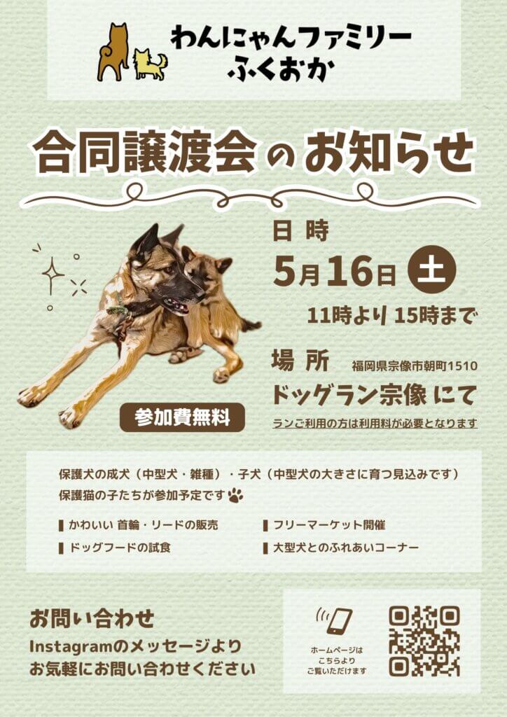 日ごろより、お手伝いしてくださるボランティアの皆さま、物資をご支援くださる皆さま、地域の皆さま、「わんにゃんファミリーふくおか」の活動を応援してくださる方々に深くお礼申し上げます。