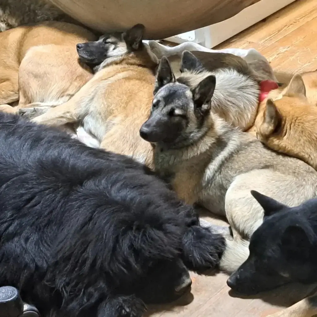 とても臆病で知らない人が近づくと脱糞したりしますが犬同士は仲良く遊びます。